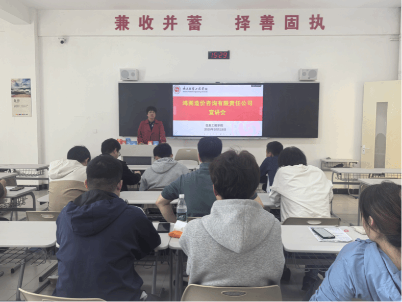 10月15日15:00,鸿图造价咨询有限责任公司专场宣讲会在C407教室如期举行。企业代表结合行业发展趋势,聚焦工程造价咨询、工程监理等核心岗位,通过案例分享、岗位模拟等形式,让学生直观了解工作内容与职业前景。现场设置互动答疑环节,企业团队针对简历优化、面试技巧等学生关心的问题提供一对一指导,帮助毕业生提升求职竞争力。两场宣讲会吸引了工程造价、能源与动力工程等相关专业百余名学生参与,现场气氛热烈,不少学生与企业初步达成就业意向。