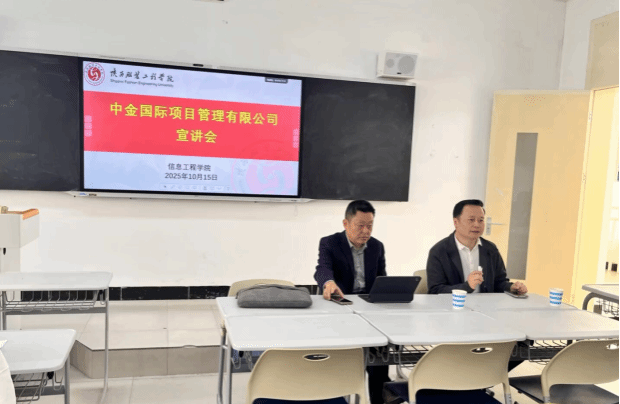 为搭建工程造价专业学生与优质企业间的沟通桥梁,帮助同学们明确职业发展方向,提升就业竞争力,10月15日,中金国际项目管理有限公司(以下简称 “中金国际”)校园招聘宣讲会在我校D507教室顺利举行。本次宣讲会吸引了 2026届工程造价专业及相关专业近60名学生参与,中金国际总经理刘立、副总经理姚经理及我校信息工程学院院长李水泉出席了本次活动。
