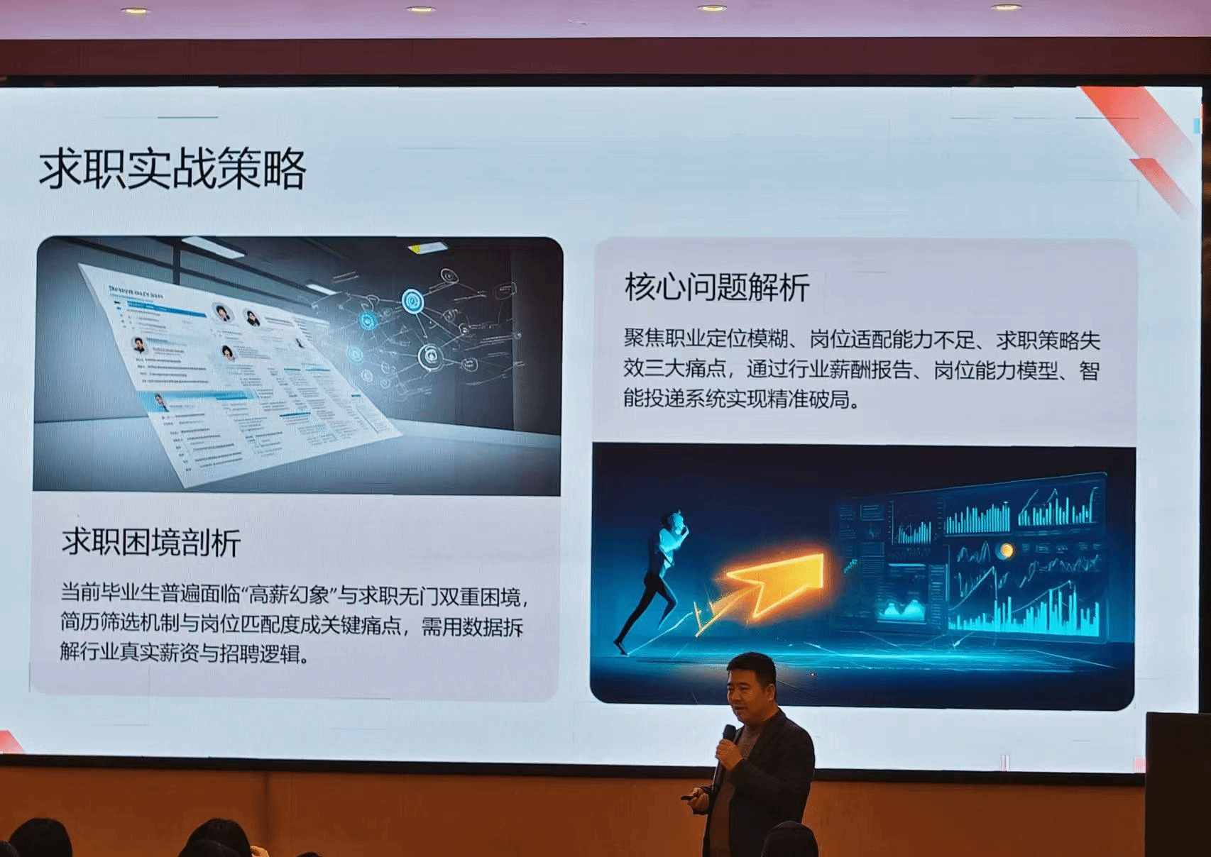 针对核心痛点,赵老师构建“自我认知-兴趣转化-规划落地-求职实战”四步行动框架,提供可直接复用的解决方案:建议借助教育部学职平台霍兰德测评完成自我定位,通过“直接适配、间接过渡、边界融合”三条路径实现兴趣与职业的有效衔接;详解“四维定位法”“三角定位法”等实用工具,帮助学生科学规划职业发展阶梯;重点分享“区域+行业+岗位”三维匹配、内推资源激活等四大求职策略,覆盖简历优化、面试技巧等关键环节。